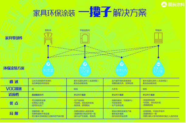 這樣,大家就很容易理解,為什么家具環保涂裝需要“一攬子”解決方案了,而對于未來發展來說,這也必定是家具涂料乃至涂裝方式發展的趨勢。