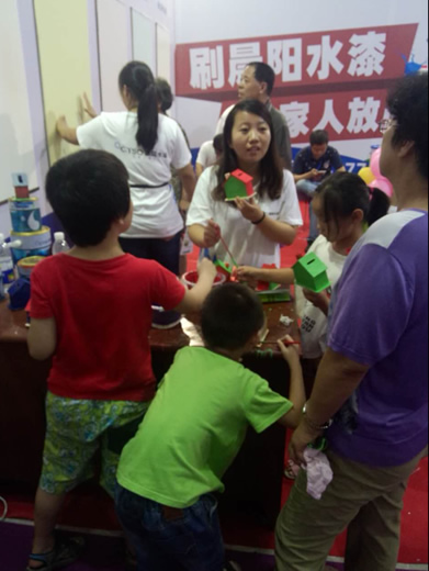 晨陽(yáng)水漆展區(qū)重點(diǎn)展示了公司生產(chǎn)的環(huán)保型家裝水漆和多功能水漆。為了讓參觀(guān)者更好地了解環(huán)保水漆特性和應(yīng)用,公司展位精心設(shè)計(jì)了海報(bào)、宣傳單頁(yè);布置有水漆應(yīng)用在工業(yè)、家裝、木器領(lǐng)域的展板和模型;邀請(qǐng)參觀(guān)人員現(xiàn)場(chǎng)用水漆涂刷木房子,親身體驗(yàn)晨陽(yáng)水漆的環(huán)保特性,現(xiàn)場(chǎng)更有訂單抽獎(jiǎng)100%中獎(jiǎng)活動(dòng)等給廣大老百姓帶來(lái)實(shí)惠的環(huán)節(jié),成為了展會(huì)關(guān)注焦點(diǎn),參觀(guān)者絡(luò)繹不絕。