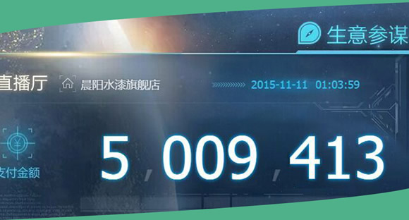 據了解,晨陽水漆天貓“雙十一”活動于11日00時00分正式開始,1小時3分59秒時在線支付金額便超過了500萬元,自此一直到“雙十一”活動結束,晨陽水漆官方旗艦店始終穩居涂料品類銷售額第一名,成為此次“雙十一”購物狂歡節中的大黑馬。