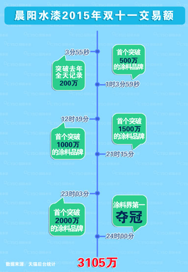 晨陽水漆天貓商城“雙11”銷量破3千萬 勇奪涂料品類榜首