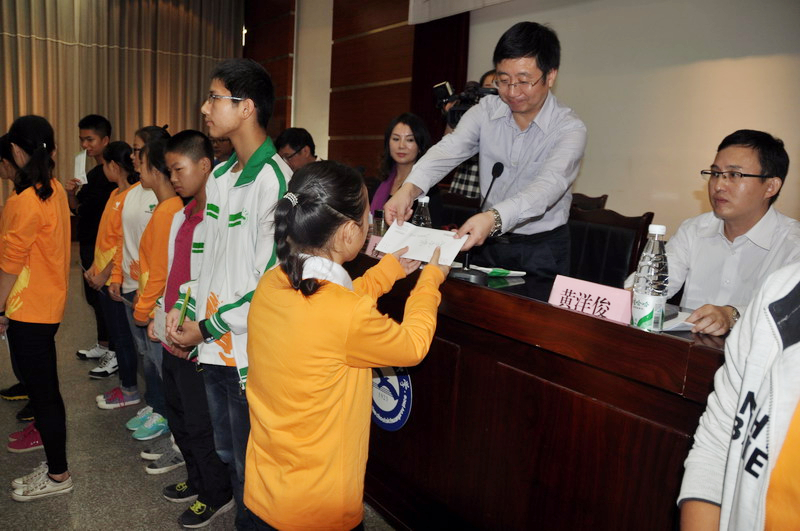 西充中學副校長馮長霖、趙國敏,西充經銷商楊國清及部分受助學生家長一同出席和見證了當天的助學啟動儀式。