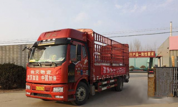 裝車(chē)地點(diǎn)離該公司廠(chǎng)區(qū)正門(mén)不足百米。記者看到,停靠在生產(chǎn)車(chē)間旁的這輛冀J牌照紅色貨車(chē),車(chē)頭擋風(fēng)玻璃正下方和貨廂的一側(cè)分別懸掛著“救災(zāi)物資武漢加油中國(guó)加油”“軍輝防火心系疫區(qū)”紅色條幅,防火涂料已快裝滿(mǎn)了整個(gè)車(chē)廂。