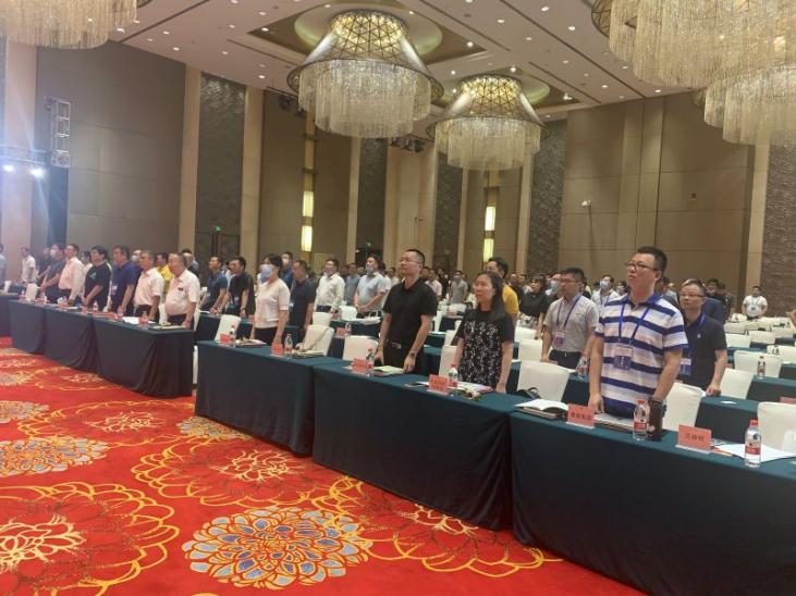 大會在莊嚴(yán)的國歌聲中正式拉開序幕,全體與會人員起立,奏唱國歌。