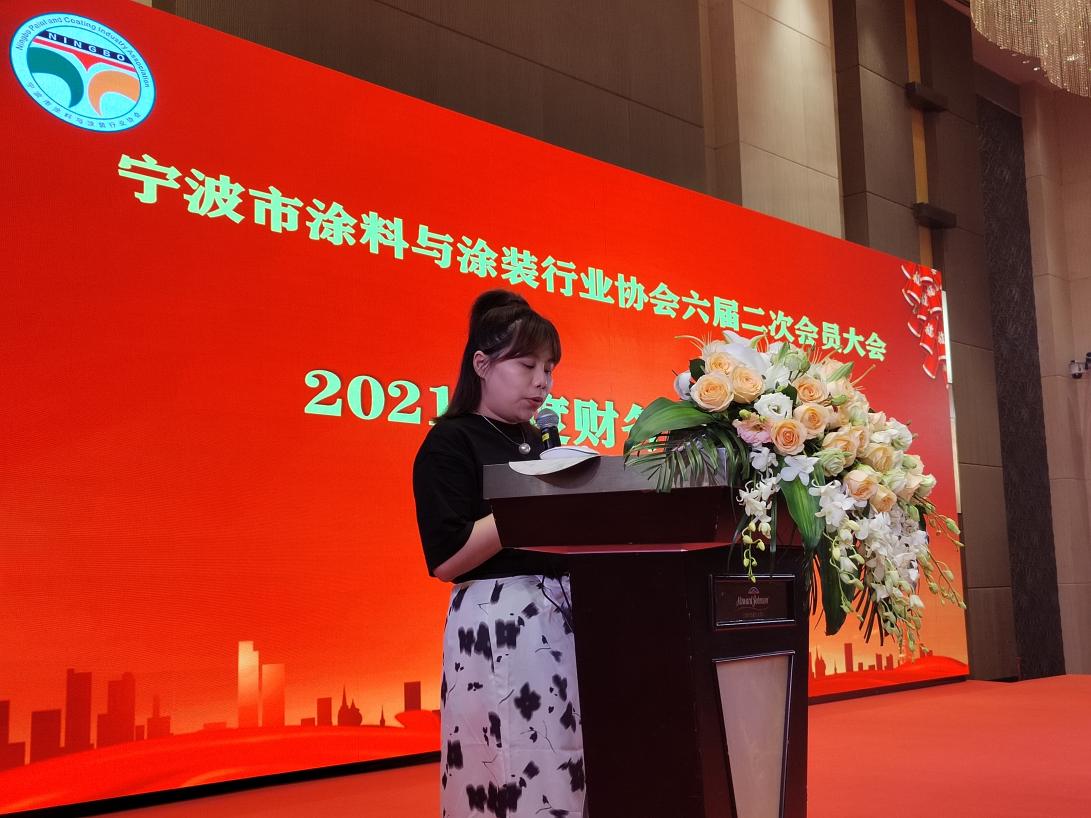 寧波知聯(lián)三江稅務(wù)師事務(wù)所有限公司嚴(yán)珂娜經(jīng)理為大會作《寧波市涂料與涂裝行業(yè)協(xié)會2021年度財務(wù)收支報告》。