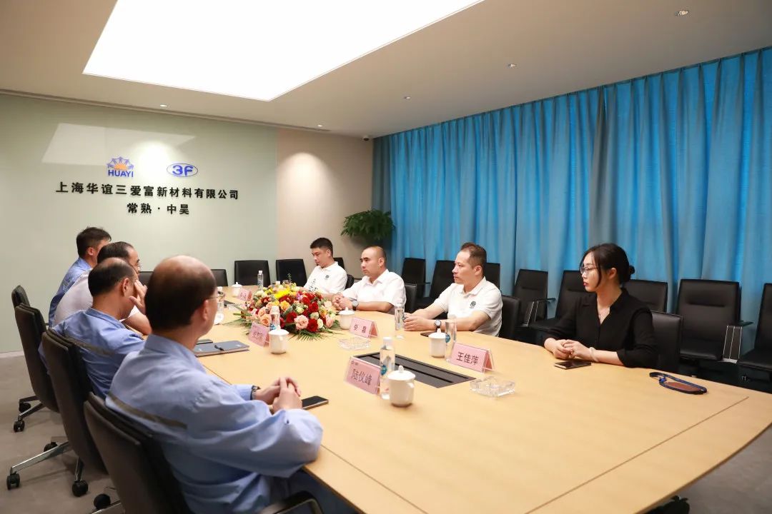 簽約儀式后,熊俊總經理一行參觀了常熟三愛富中昊化工新材料工廠,了解生產銷售情況和科研現狀、深入生產現場實地考察。
