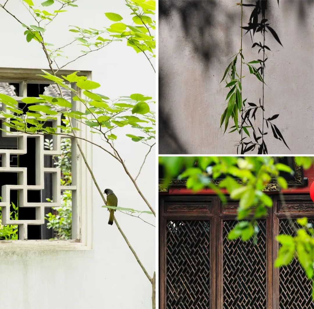 風和日麗春日里,自有清雅恬適之樂。春江水暖中,花紅柳綠間,青磚黛瓦所營造的大片留白,形成一幅“小橋流水柳生煙,古渡橫舟杏雨天”的桃源畫卷。絢爛的金色、翠綠、藍色與紅色,交織出繁麗之中的純凈溫情。