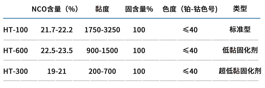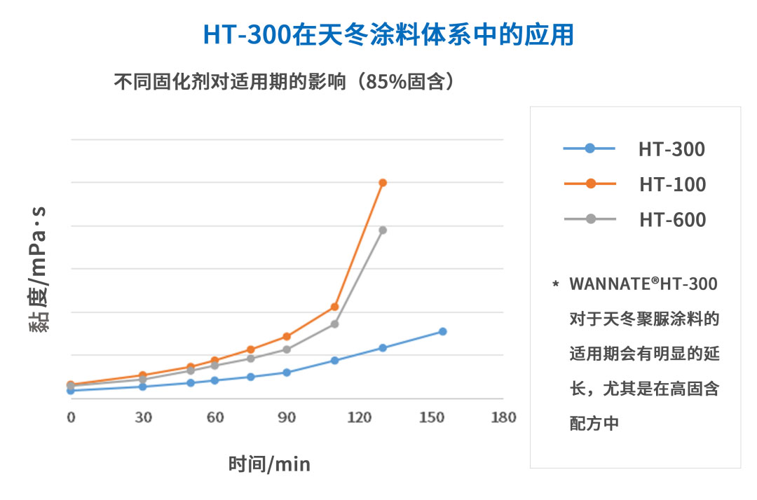 基于低黏、長(zhǎng)適用期、高相容性的特點(diǎn),HT-300可應(yīng)用于天冬聚脲、高固低黏涂料、水性涂料和UV樹脂等多種體系。