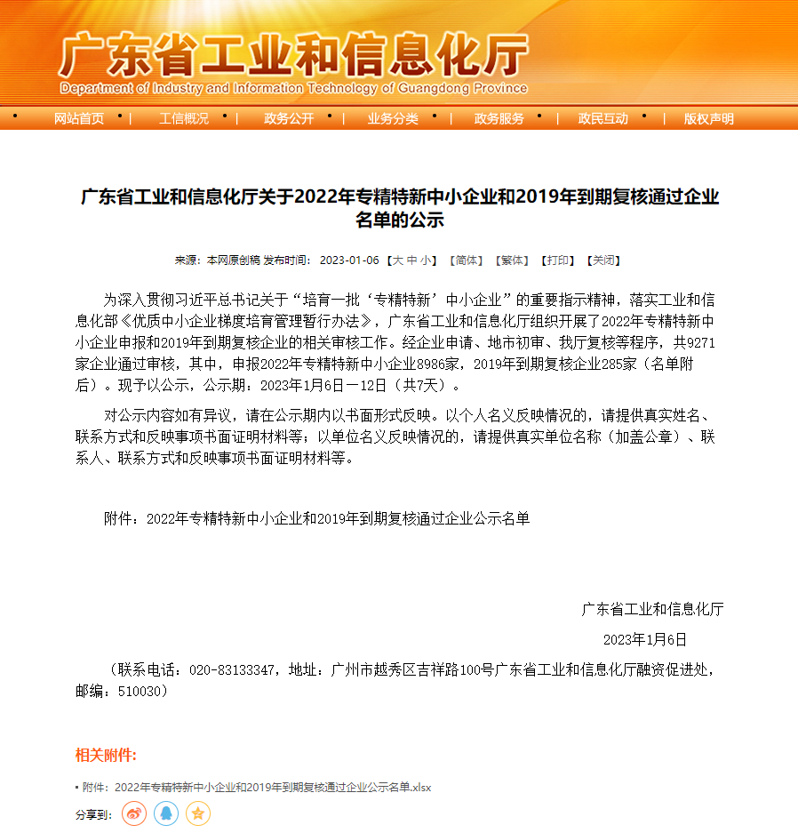 在入選“廣州市‘專精特新’扶優計劃培育企業”名單之后,近日,集泰股份又被廣東省工業和信息化廳評為省級“專精特新”中小企業!