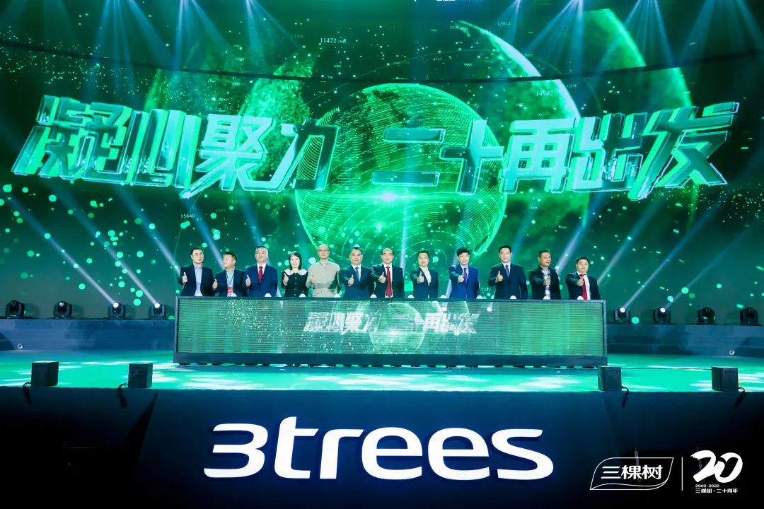 三棵樹品牌代言人武大靖、谷愛凌、中國國家短道速滑隊通過視頻表達對三棵樹成立20周年的美好祝福。在全體三棵樹人和合作伙伴嘉賓的見證下,三棵樹“凝心聚力 二十再出發(fā)”正式啟動。隨后,舉辦了20周年慶典晚會。