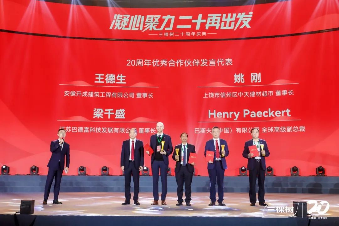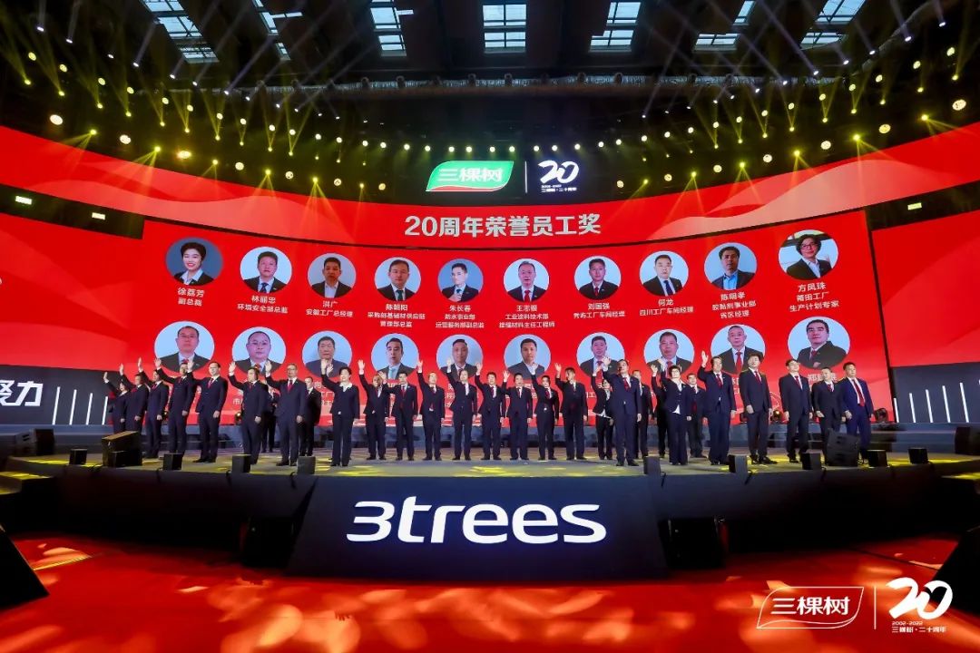 在表彰環(huán)節(jié),60名合作伙伴獲得三棵樹“20周年優(yōu)秀合作伙伴”榮譽;20名三棵樹奮斗者獲頒“20周年貢獻獎”,另有20名陪伴三棵樹20年一起成長的奮斗者獲頒“20周年榮譽員工獎”。多名合作伙伴代表上臺領獎并發(fā)表感言,2名員工代表做了深情分享。投融資機構代表發(fā)表致辭,高度評價了三棵樹在資本市場的良好表現(xiàn)。