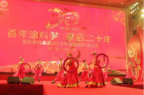 本次經銷商大會暨答謝會,會場妝點的紅紅火火、喜氣洋洋,與會嘉賓共著“展辰二十年”紅裝,燃點2015的激情與希望。“感恩、人文、創意、和諧、拼搏”等成為活動的主旋律,融合中外藝術團體,匯集全體展辰人的熱情和才智,共賀展辰二十歲生日快樂。